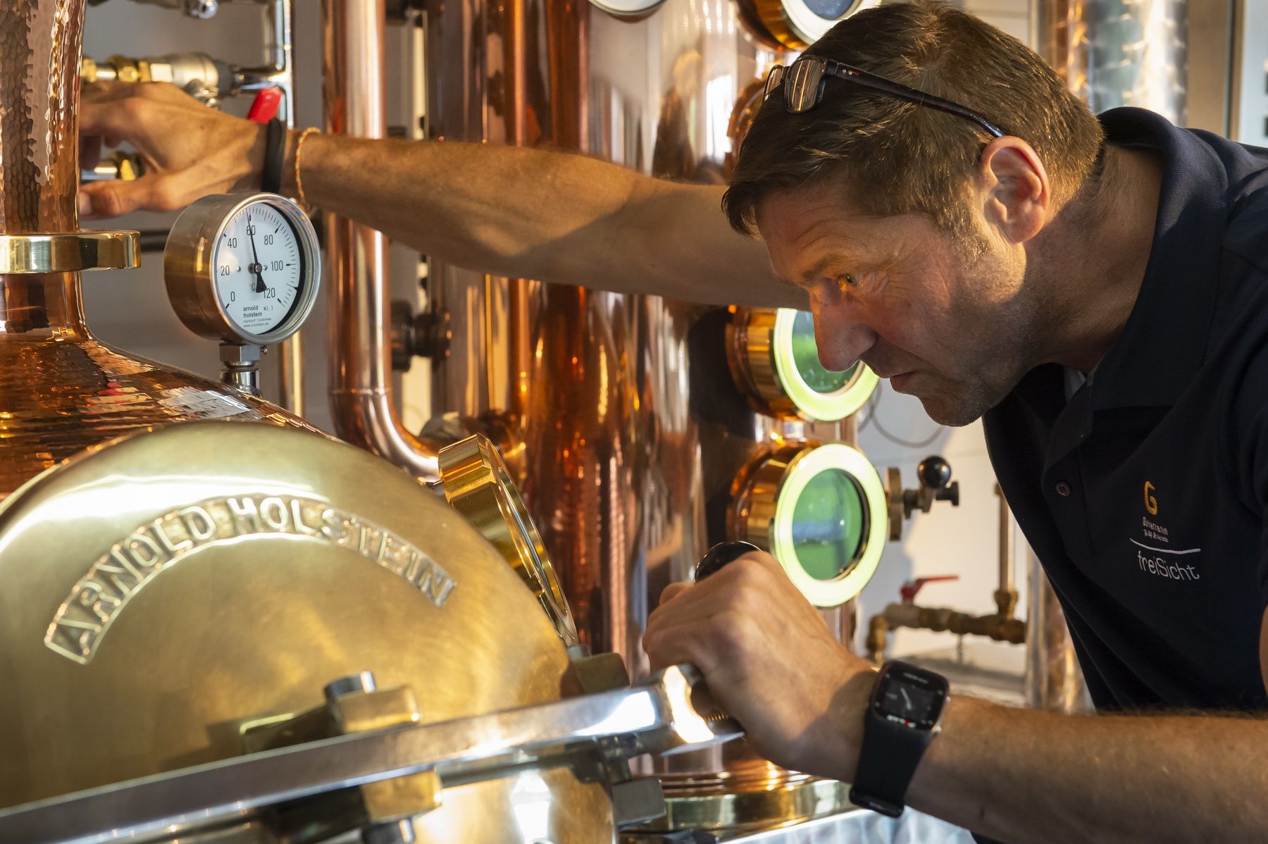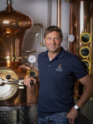 Es gibt Dinge, bei denen weiß man sofort, dass sie etwas Besonderes sind. Die charaktervollen Edelbrände, die Walter Gutemann komponiert, sind so Dinge. Wenn es blubbert, zischt und brodelt, dann hat der Edelbrandsommelier den kupfernen Kessel angeheizt. Das Obst ist aus eigenem Anbau, die Suche nach Perfektion bestimmt das hochprozentige Geschäft.