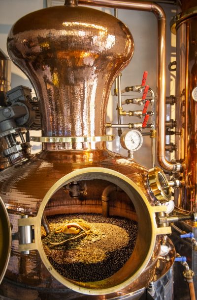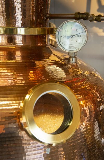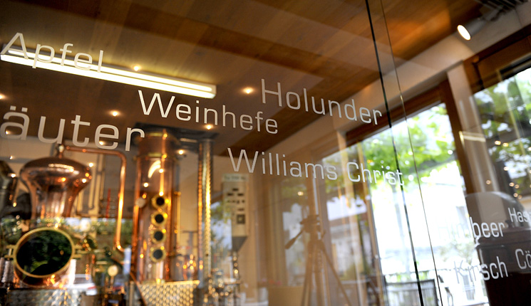 Die Schaubrennerei ist sprichwörtlich zum Wohl unserer Gäste: Nur durch eine Glaswand vom Frühstücksraum abgetrennt, lässt sie neugierige Blicke gerne zu. Himbeergeist und Co. blubbern fröhlich vor sich hin und was sich dem Zuschauer hier bietet, ist weit mehr als nur Show.
